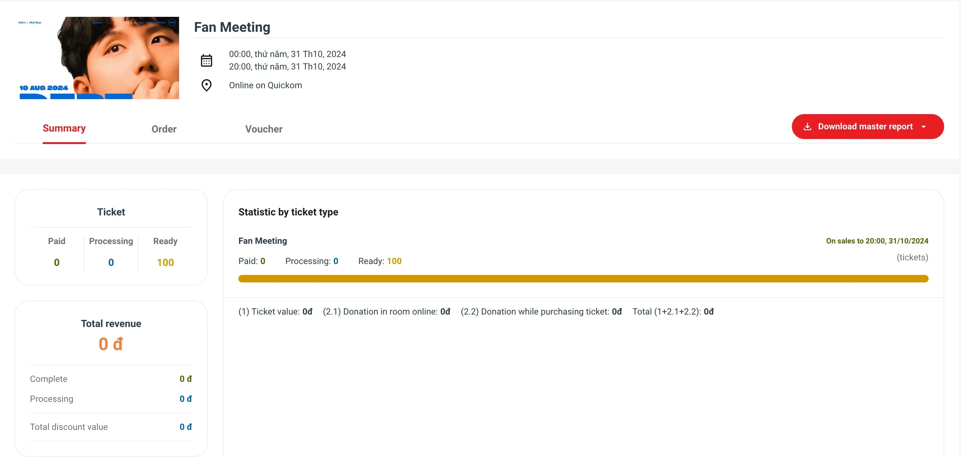 Các sự kiện trên Quickom chủ yếu là những sự kiện có quy mô vừa và nhỏ, với sức mua được phân bố đồng đều trong suốt thời gian bán vé. Nếu bạn có kế hoạch tổ chức một sự kiện lớn với lượng truy cập cao, hãy kiểm tra kỹ lưỡng và cân nhắc trước khi quyết định chọn nền tảng này.